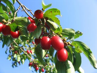 Reife Dirndl auf dem Strauch Bildquelle: J. Weiß - Steinschaler Naturhotels Bild darf nur nach Rückfrage mit Erlaubnis und unmißverständlichen Hinweis und Link auf den Urheber und dessen Organisation, sowie nicht kommerziell verwendet werden.