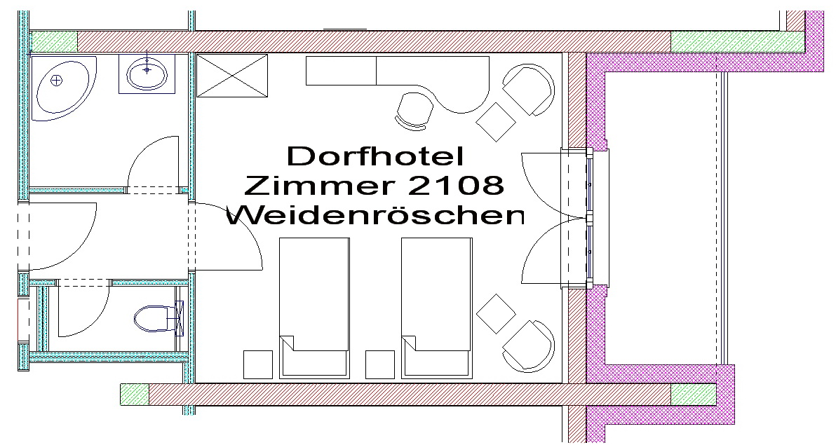 Steinschaler Dörfl - Dorfhotel: Plan Zimmer 2108 - Weidenröschen-Zimmer Bild: Steinschaler Naturhotels Bild darf nur mit Hinweis den Urheber verwendet werden.
