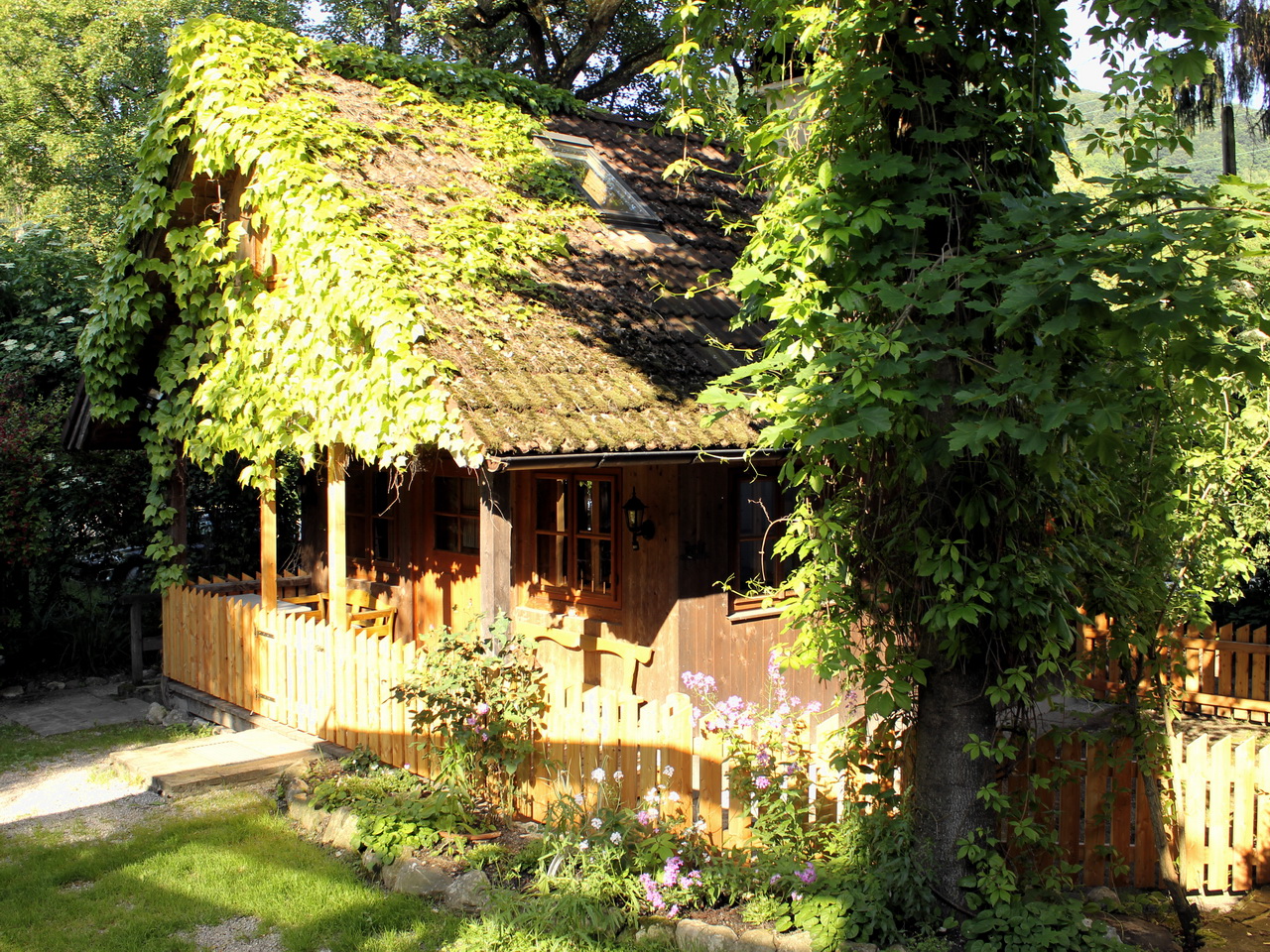 Naturhotel Steinschalerhof: Gartenhaus 21 mit Zaun für Hunde Bildquelle: J. Weiß - Steinschaler Naturhotels Bild darf nur nach Rückfrage mit Erlaubnis und unmißverständlichen Hinweis und Link auf den Urheber und dessen Organisation, sowie nicht kommerziell verwendet werden.