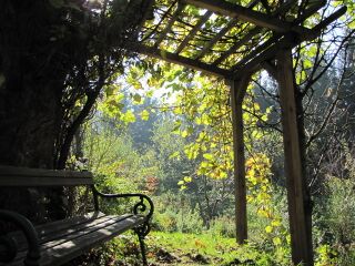 Steinschalerhof: Bankerl im Südagartenlaube (c) Foto: Weiß - Steinschaler Naturhotels Bild darf nur mit vollen Hinweis auf den Urheber verwendet werden.