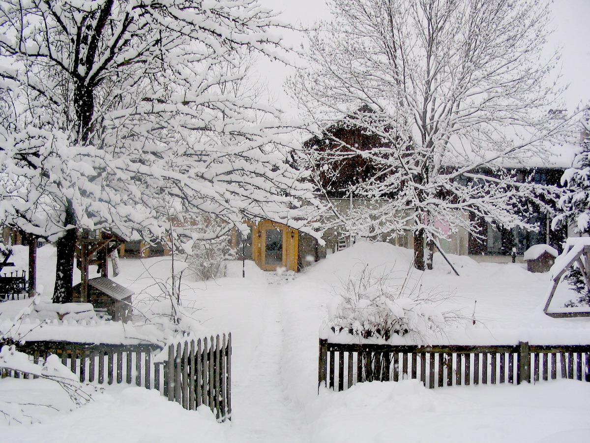 Winter im Nostalgiegarten - Blick Vierkanthof (Joh. Weiß- Steinschaler Naturhotels)