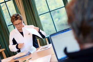 Gruppenarbeit beim offenen Kamin - Joglzimmer